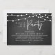 Woth joyius hearts, announce and share your happily ever after in style with our modern rustic string lights, cottage dark grey chalkboard theme design "Happily ever after party" wedding elopement or reception dinner and dancing celebration invitation card. It is ideal for couples who have decided to celebrate their best day. With its sophisticated yet playful design, this invitation is sure to set the tone for an unforgettable event. The invitation card features a modern and minimalist script design theme, adding a touch of timeless elegance to your celebration. Designed by TeeshaDerrick
