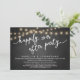 Announce your happily ever after in style (Happily ever after party) with our modern rustic chalkboard background, cottage string lights design wedding elopement celebration invitation card. Our Happily Ever After Party Celebration Invitation card is ideal for couples who have decided to elope and want to host a party to celebrate their union. With its sophisticated yet playful design, this invitation is sure to set the tone for an unforgettable event. The invitation card features a minimalist rustic elegant design scheme, adding a touch of timeless elegance to your celebration. Designed by TeeshaDerrick