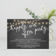 Announce your happily ever after in style (Happily ever after party) with our modern rustic dark grey chalkboard style graphic background, cottage string lights design wedding elopement celebration invitation card. Our Happily Ever After Party Celebration Invitation card is ideal for couples who have decided to elope and want to host a party to celebrate their union. With its sophisticated yet playful design, this invitation is sure to set the tone for an unforgettable event. The invitation card features a minimalist rustic elegant design scheme, adding a touch of timeless elegance to your celebration. Designed by TeeshaDerrick