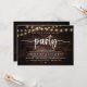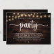 Elegantly announce your happily ever after with our modern rustic brown wood string lights theme wedding elopement, wedding reception dinner and dancing celebration invitation card, "Happily Ever After Party". Tailored for couples continuing their love story, this invitation strikes a perfect balance of sophistication and charm, setting the scene for an unforgettable event. Featuring a modern contemporary script design, it adds a touch of timeless grace to your special day.