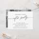 This modern yet elegant wedding elopement party invitation features a script greeting that says "Happily Ever After Party" and classic typography. Customize it with your own "full-bleed" horizontal photo on the back, or delete if desired. All colours in this design are customizable. You can further customize this design by adding additional text to the back.