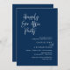 Announce and share your happily ever after in Navy Blue style with our modern theme design (Happily ever after party) wedding elopement celebration invitation card. It is ideal for couples who have decided to celebrate their best day. With its sophisticated yet playful design, this invitation is sure to set the tone for an unforgettable event. The invitation card features a modern design, dark grey cream themed, adding a touch of timeless elegance to your celebration.