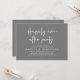 Celebrate the magical evening after “I do” with this sophisticated and romantic wedding reception dinner and dancing invitation — perfect for honouring the couple celebrating their big day. Design Highlights, Modern minimalist aesthetic with bold serif typography and flowing script, “Happily ever after party” headline sets a dreamy, timeless tone, Clean layout with ample space for all essential details (date, time, venue, RSVP info) and Crisp white text on dark grey background — classic, chic, and effortlessly elegant. Perfect for Intimate rehearsal dinners, Pre-wedding celebrations with family and close friends and Couples who love modern calligraphy and understated luxury.