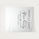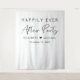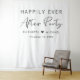 Chic white wedding reception welcome sign and photo backdrop tapestry featuring "Happily Ever After Party" in simple typography and a stylish modern script, your names joined together by a heart and your reception date.