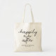 This stylish wedding tote bag is the perfect accessory for any bride, groom, or newlywed couple. With its classic design and customizable details, this bag is sure to make a statement wherever you go. The beautiful font features the words "Happily Ever After" in a stunning calligraphy style, making it a romantic and timeless piece. This tote bag is both durable and spacious, with plenty of room to hold all of your wedding day essentials or to use as a reusable shopping bag. What sets this bag apart is the ability to personalize it with the couple's names and wedding date, creating a truly unique and meaningful keepsake that will be treasured for years to come.