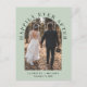 Modern sage green elopement or private wedding announcement and reception invitation postcard. The front features your wedding day photo in an arch frame and "Happily Ever After" in elegant typography. Under your photo, add your first names and wedding date. On the reverse, personalize your message and reception details and add your names in a signature-like script.