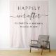 Simple light pink wedding reception or party photo backdrop tapestry with "Happily Ever After" in a mix of simple typography and a trendy script with swashes, your first names and the event date.