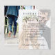Chic and budget-friendly elopement and small wedding announcement and wedding reception party invitation. The front features your photo overlayed with "Happily Ever After Party" in simple typography and a modern script, your wedding announcement and invitation and your names in a signature-like script. Add a photo, your first names and wedding date on the reverse side. This budget semi-gloss paper is similar in weight to photo paper. A larger 5x7 traditional card stock version is also available (message us for the link).