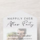 Elegant elopement or private wedding announcement and reception all in one invitation to announce your marriage to friends and family and to invite them to a post-wedding reception or celebration party. Your personalized announcement and invitation overlays your wedding day photo, and "Happily Ever After Party" is written in a mix of simple typography and a modern script. Input your wedding website URL address to create a QR code for your guests to RSVP online and obtain information on accommodations, directions, any night before parties and other details. A tear away RSVP postcard provides a convenient and eco-friendly and envelope-free response from your guests.