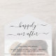 Modern elopement or private wedding announcement and reception all in one invitation to announce your marriage to family and friends and to invite them to a post-wedding reception or party. Your customized announcement and invitation overlays your wedding day photo, and "Happily Ever After" is written in a trendy script with swashes. A tear away RSVP postcard provides a convenient and eco-friendly and envelope-free response from your guests.