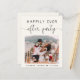 Budget-friendly and elegant light cream elopement or smaller wedding announcement and reception invitation. The front features your wedding day photo, "Happily Ever After Party" in a mix of simple typography and a pretty script with swashes and your first names and wedding date. On the reverse side you can personalize your message in more detail and add party or reception invitation details and your names in a signature-like script.