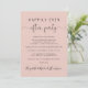 Stylish blush pink elopement or private wedding announcement and reception invitation. On the front, "Happily Ever After Party" is written in a mix of simple typography and an elegant script with swashes, and you can personalize your message and invitation and add your names in a signature-like script. On the reverse side, input your wedding website URL address to create a QR Code for guests to scan for all of the details and to RSVP online.