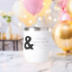 This stemless wine tumbler features a large ampersand text that reads, “They lived happily ever after”. The design makes this a great gift for a wedding or anniversary.