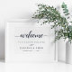 Welcome guests to your wedding with our sweetly chic poster, available in several sizes. Design features rich navy blue typography on crisp white with "welcome" at the top in elegant handwritten calligraphy script, and "...to our happily ever after" and your names and wedding date beneath in classic block lettering.