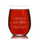 Happily Ever After White Script Wedding Stemless Wine Glass
