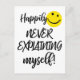 This design is perfect for those who don't need to explain themselves! The text reads: "Happily never explaining myself!" A yellow happy face accompanies the word "happily." Happily NEVER explaining myself design © 2019 Regina Blankenship.