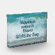 Happiness comes in Waves SEAS the Day! Perfect for anyone in your life to congratulate a promotion, graduation, retirement or birthday. This beautiful beachy acrylic photo display features breaking surf and a white splashing wave on a sandy beach against tropical aqua blue water with a coastal play on words: Carpe diem! Seize the Day! SEAS the Day! This image is original ocean photography by JLW_PHOTOGRAPHY