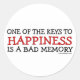 One of the keys to happiness is a bad memory. Funny humourous sayings / quotes for short attention spans, seniors, getting older, etc. Saying about aging and getting older on T-Shirts and gifts.