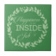 Happiness is an inside job graphic with a green wreath and heart. Happiness, love and inner peace is always from within. Custom graphic design made with love.
