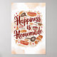 Bring warmth and joy to your kitchen with this charming "Happiness is Homemade" poster. Featuring a watercolor design of baked goods and kitchen utensils encircling the heartfelt phrase, this print is a delightful reminder of the simple pleasures of home cooking. Perfect for adding a touch of rustic charm to your decor.