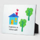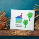 A house that is "homemade," surrounded by trees, with English Proverb: "Happiness is Homemade!" Perfect for the couple buying their first home, or for anyone who's home is full of love! (word on roof is: LOVE)