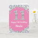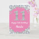 Happy 11th Birthday Pink and Silver Glitter Card with personalized name. For further customization, please click the "Customize it" button and use our design tool to modify this template.