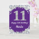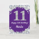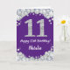 Happy 11th Birthday Purple and Silver Glitter Card with personalized name. For further customization, please click the "Customize it" button and use our design tool to modify this template.