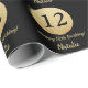 Happy 12th Birthday Black and Gold Glitter Wrapping Paper