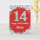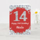 Happy 14th Birthday Red and Silver Glitter Card with personalized name. For further customization, please click the "Customize it" button and use our design tool to modify this template.