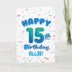 Celebrate their 15th birthday with a bright, cheerful, and personalizable birthday card! This custom name birthday card features a bold number fifteen balloon and colorful confetti.