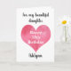 A Happy 16th birthday daughter card that features a pretty watercolor heart. You can personalize this daughter birthday card with her age inside the heart and her name underneath the heart. The inside birthday card message reads "I hope that today and every day is filled with lots of love, laughter & fun. I love you, always.Happy 16th Birthday!" The card message can be easily edited. The back of this personalized birthday card reads Happy Birthday.