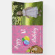Cute Baby Girl Pink Owl with Balloons wearing a Colourful Hat, Happy 1st Birthday Banner.