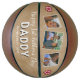 Happy 1st Father`s Day Daddy Keepsake 3 Photo Basketball. Rustic old paper beige background with cute flowers, the text is trendy white. Personalize with three photos, your name and the year. You can change daddy to dad, papa, pap,... This custom and personalized basketball is a perfect gift for a new dad on his 1st Father`s Day and sweet keepsake basketball for a dad who loves sports.