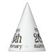 These party hats feature the words "Happy 20th Anniversary" in a unique print font with gold letters black outline. All paper hats have an attached elastic string printed in full vibrant colours made in the USA has a Minimum of 12 order requirement.