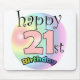 Gelukkige 21e verjaardag muismat Leuk als cadeau voor iemand die éénentwintig is geworden. Regenboog kleuren. 21 is in een roze kleur.