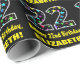 This fun birthday themed wrapping paper design features a large number "22", filled with a pattern of star shapes having various sizes and colours. It also features the message "Happy 22nd Birthday,", and an editable name. The background is coloured black. Fun wrapping paper like this might be used when wrapping presents being given to somebody in celebration of their twenty second birthday. [~Z0000429]