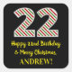 Happy 22nd Birthday & Merry Christmas, Custom Name Square Sticker