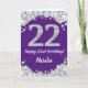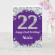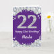 Happy 22nd Birthday Purple and Silver Glitter Card with personalized name. For further customization, please click the "Customize it" button and use our design tool to modify this template.