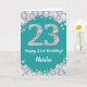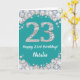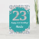 Happy 23rd Birthday Teal Turquoise Aqua and Silver Glitter Card with personalized name. For further customization, please click the "Customize it" button and use our design tool to modify this template.
