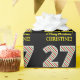 This fun and simple Christmas-themed and birthday-themed December 25th birthday wrapping paper design features a large number "27", with a red, white, and green stripes pattern. It also features the message "Happy 27th Birthday & Merry Christmas,", and a custom name. The background is coloured black. Wrapping paper like this might be used when wrapping presents or gifts that are being given to somebody whose twenty seventh birthday falls on December 25th (Christmas Day). [~Z0000406]