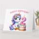 Cute Unicorn in pink and lilac colors. A birthday cake with a Number Two Candle.