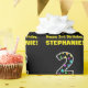 This fun birthday-themed wrapping paper design features a large number "2", filled with a pattern of star shapes having various sizes and colours. It also features the message "Happy 2nd Birthday,", and a personalized name. The background is coloured black. Birthday themed wrapping paper like this might be a fun way to wrap a gift or present being given to celebrate somebody’s second birthday. [~Z0000429]