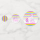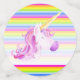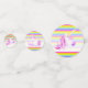 2nd birthday table confetti, featuring a cute whimsical unicorn watercolor painting and colourful rainbow stripes. Personalize with your own birthday girls name, currently reads, Estelle is turning two. Unique drawing, watercolor painting art and graphic design by Sarah Trett www.sarahtrett.com for www.mylittleeden.com