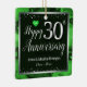 Lovely red Happy 30th Anniversary ornament. Faux foil on 30th and as a border frame. Green oil background created by Valarie Wade. Tiny green heart gem in the upper corner. Names and dates are adjustable.