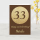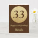 Happy 33rd Birthday Brown and Gold Glitter Card with personalized name. For further customization, please click the "Customize it" button and use our design tool to modify this template.