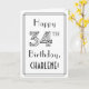 The front of this stylish Roaring Twenties art deco inspired birthday themed greeting card design features the message “Happy 34th Birthday,” and an editable recipient name. The number “34th” on the front has a fancy lined styling, and there is also a lined border. The inside features a customized birthday greeting message, or could perhaps be cleared and left blank if a message is to be written by hand instead. A luxurious, personalized birthday greeting card like this might be a fun way to deliver birthday greetings to somebody who is celebrating their thirty-fourth birthday. [~Z0000641]