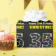 This fun birthday-themed wrapping paper design features a large number "35", filled with a pattern of star shapes of various colours and sizes. It also features the message "Happy 35th Birthday,", and a personalized name. The background is coloured black. Birthday themed wrapping paper like this might be a fun way to wrap a gift or present being given to somebody who is celebrating their 35th birthday. [~Z0000429]