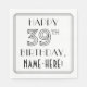 This stylish 1920s-1930s era inspired art deco look birthday themed paper napkin design has the message “HAPPY 39TH BIRTHDAY,”, plus an editable recipient name. The number “39TH” has a fancy geometric lined appearance, and there is also a multi-line border around the birthday greeting message. Elegant birthday themed paper napkins like these might be used at a party in celebration of somebody’s thirty-ninth birthday. [~Z0000644]