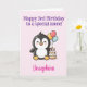 Happy 3rd Birthday Niece, Penguin, Personalized Card