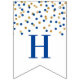 Happy 40th Birthday banner with dark blue and gold confetti pattern. Can be customized for any age.
